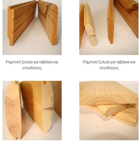 Επιλεγμένη ξυλεία από Πεύκο, ΄Ελατο, Δρύ, Oregon pine, Pitch pine, Teak τροπική ξυλεία για ταβάνια και επενδύσεις τοίχων σε πάχη 12, 5, 25mm. Κατάλληλη για εσωτερικές και εξωτερικές κατασκευές.